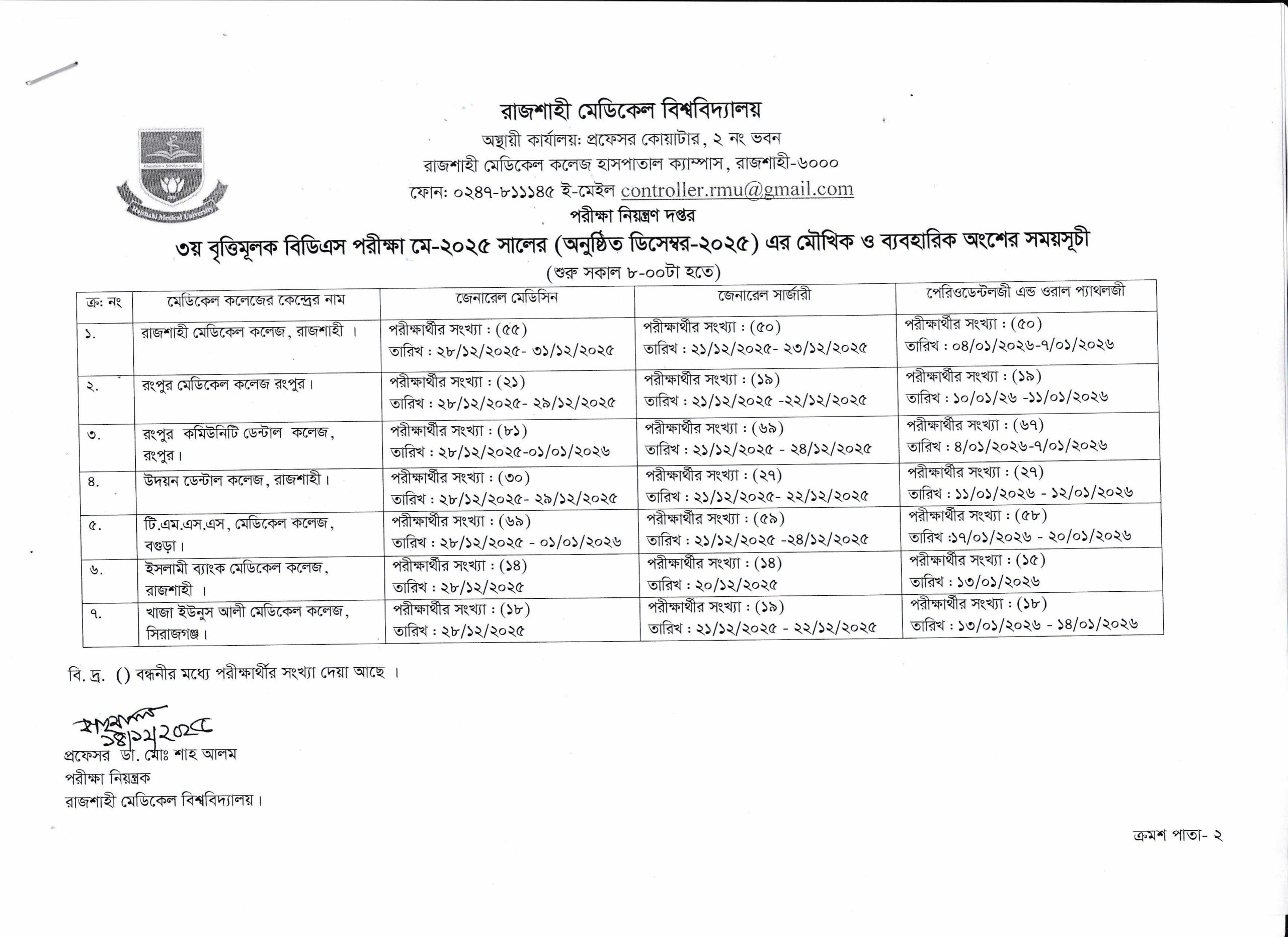 3rd Prof. Oral & Practical BDS Examination Written Routine – May 2025 Click For Download File: Download